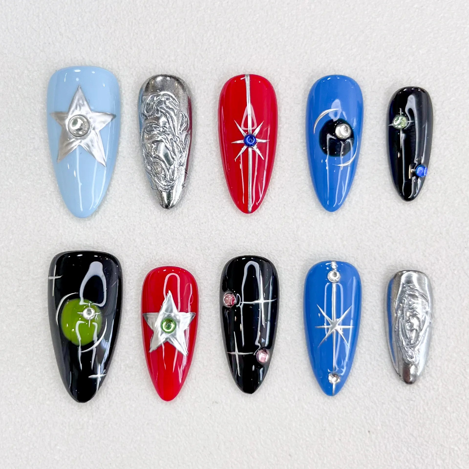Production:Handmade Press-On Nails – Almond Hand-draw star chrome | CHU-FEN