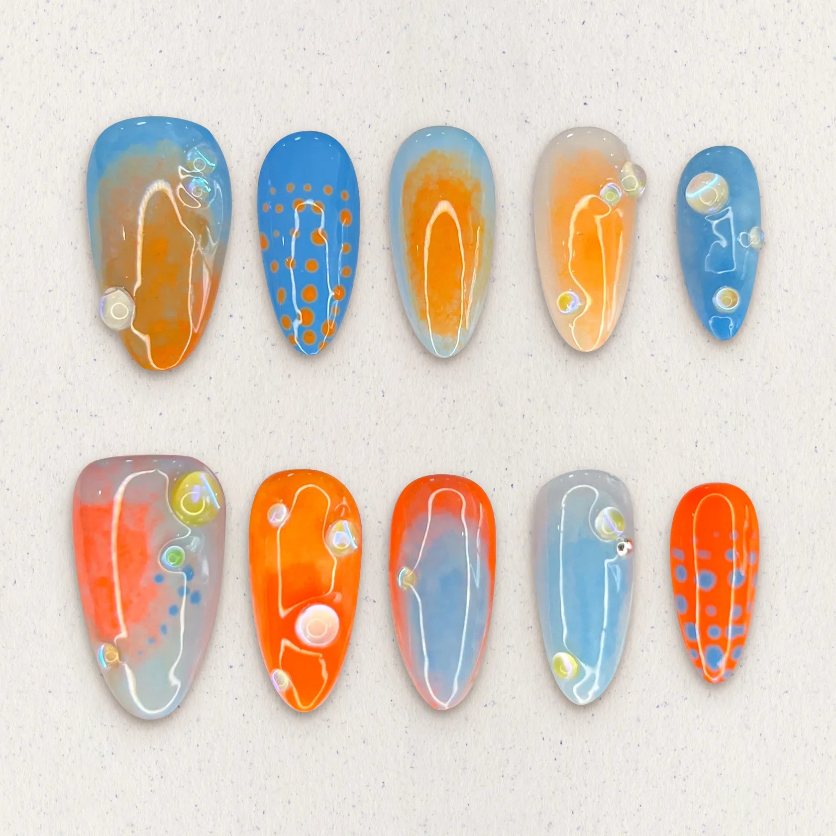 Production:Handmade Press-On Nails – Almond Glossy Blue Sunset | CHU-FEN